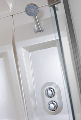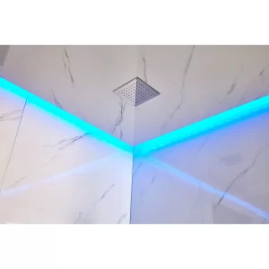 Die Dusche in Dampfsaunen ist in der Regel so konzipiert, dass sie ein angenehmes Gefühl der Erfrischung und Abkühlung erzeugt. Oftmals ist sie mit einer Breitbrause oder mehreren Düsen ausgestattet, die eine gleichmäßige Wasserverteilung am Körper ermöglichen. Das Wasser aus der Dusche ist in der Regel kühler als die Temperatur in der Dampfsauna, wodurch der Körper schnell abkühlt.