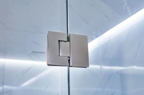 SCHARNIERE AUS GEHÄRTETEM GLAS UND EDELSTAHL