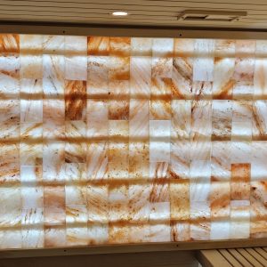 Besondere Wände, die mit Salzsteinplatten bedeckt sind, sorgen für die richtige Salztherapie, die die Wirkung elektronischer Geräte neutralisiert, bei Atemwegserkrankungen, Erkältungen, Allergien sowie verschiedenen Hautkrankheiten und -zuständen hilft.